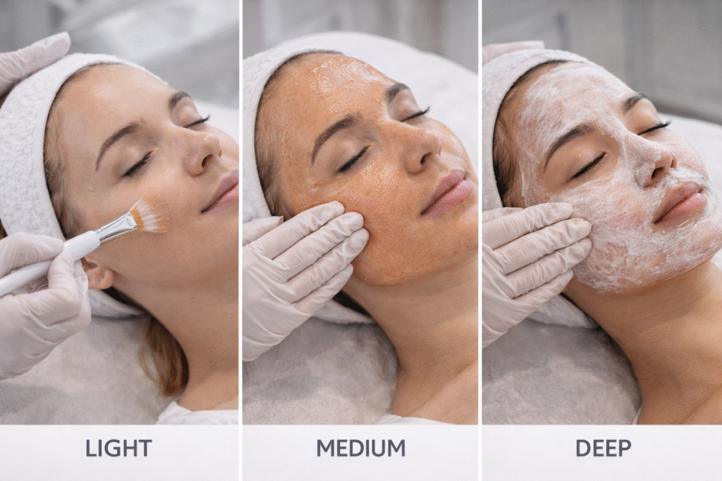One of the most important factors in determining the right peel is your skin type. Each skin behaves differently, and a peel that works beautifully for one person may be too strong or ineffective for another. That’s why professional evaluation is essential.
